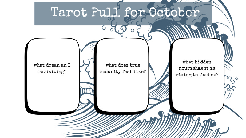 This month’s Tarot pull is a mere 3 cards, focused on the Grand Trine in water. Pull the 3 cards and let the messages soak into you… Last spring, when Saturn and Neptune first entered Aries, it felt like someone lit a spark under a new dream. A fresh burst of energy, a big “yes” from the universe. But here we are in October, and Saturn has retrograded back into Pisces (with Neptune not far behind), tugging at us to revisit that dream. Not to scrap it—just to ask: does it still hold water? How can we finally bring this dream to life? Toward the end of the month, something beautiful forms in the skies: a grand water trine. Saturn in Pisces, Jupiter in Cancer, and Mars + Mercury passing through Scorpio. Trines are an easy flowing energy, and not long ago, Saturn and Jupiter were SQUARE — a tough push pull energy. But now we have connection and flow with a TRINE. So take advantage of it!