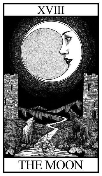 Here we have the rather spooky landscape of the Moon card. Appropriate for Halloween. The Moon card is associated with the zodiac sign of Pisces. Pisces whispers: What was the dream you glimpsed earlier this year? Maybe it felt big, maybe it felt fragile. Maybe it fell apart. Saturn says: now’s the time to test it, shape it, crystalize it. Make it real. I’m currently reading, The Mountain is You, a book that addresses how our subconscious patterns, repeated over and over again lead to a landscape of ruined and forgotten dreams. The Moon card, associated with Pisces, brings up the deep waters of the subconscious and the potential monsters that live there in the dark waters. It’s dark out there… And kinda cold. Are you brave enough to venture out? The Moon also is an indicator of the past, as well as cycles and seasons. Neptune entered Pisces in 2011. And Saturn entered Pisces in 2023. What have you encountered during these 2 seasons of your life? What has slipped through your fingers? Jupiter in Cancer