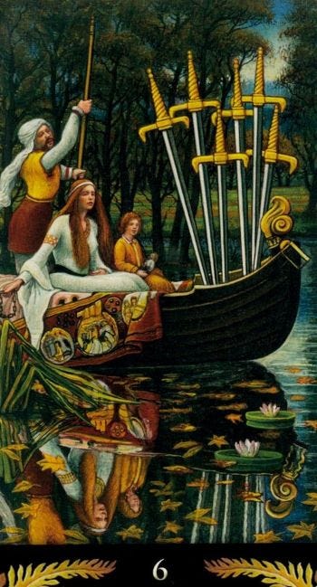 6 of swordsI didn’t go to the meeting to fix anything. Tarot works like that too. A reading doesn’t rearrange the outer world. It rearranges the inner one. The shift in perspective and of the interior world IS the magic That’s why after a good Tarot reading, I just feel better. Not because I necessarily know what’s coming, but because I’ve sorted out my perspectives and feelings around what I asked about.